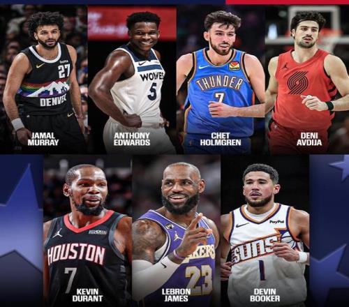 2月2日一早NBA官方公布了本赛季全明星替补阵容,至此本赛季24名全明星球员全部确定!西部联盟这边5名先发球员是东契奇、SGA、库里、文班亚马、约基奇,7名替补球员是爱德华兹、霍姆格伦、贾马尔·穆雷、布克、阿夫迪亚、杜兰特、詹姆斯。相信这份名单出炉很多球迷有话要说,作为东道主洛杉矶快船哈登、小卡两大核心都没有入选实在让人看不懂,要知道伦纳德本赛季35场比赛场均能砍下27.6分6.2篮板3.6助攻2抢断0.6盖帽,投篮命中率49%,三分命中率39%攻防两端都回到了巅峰水准,哈登也有场均25.4分4.8篮板8.1助攻的数据!全明星阵容全部出炉,谁最水?数据从不说谎!