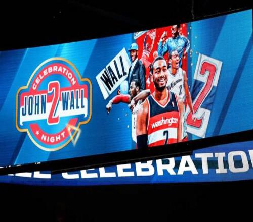 周四,华盛顿奇才队举办了“约翰·沃尔庆祝之夜”活动,向这位球队21世纪以来最具标志性的球员致敬。活动现场,球队向球迷分发了沃尔的摇头娃娃,在对阵密尔沃基雄鹿队的比赛中场休息时,大屏幕上播放了沃尔的精彩集锦,并安排他在中场休息时发表了讲话。