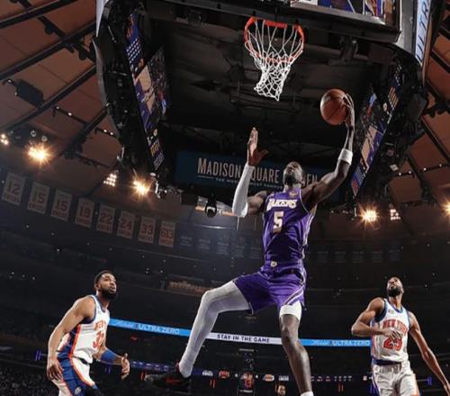 阿奴诺比突破造成艾顿犯规,随后投进首节第2记三分也拿到11分。艾顿接詹姆斯妙传空接打成2+1,首节打完,湖人33-27领先尼克斯。