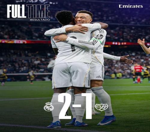 比赛结束,皇家马德里在主场击败巴列卡诺!
